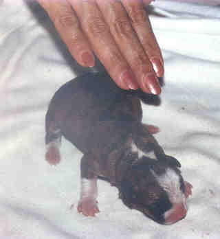 Newborn me and Grandma’s paw. (She delivered all 5 of us !) |
