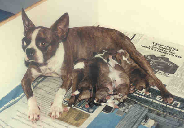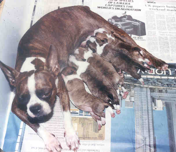 Peppi nursing her quints. |